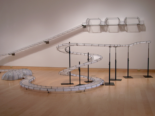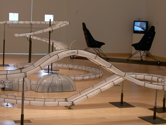 Sabrina Raaf’s exhibition Float playfully queries the relationship between humans and imaginative technological systems. Ingeniously dissecting organic/scientific advancements and their impact on the modes and environments we inhabit, the works in Float suggest a coactive relationship between machines and their users; subjects and their environments; systems and architecture; perception and space.