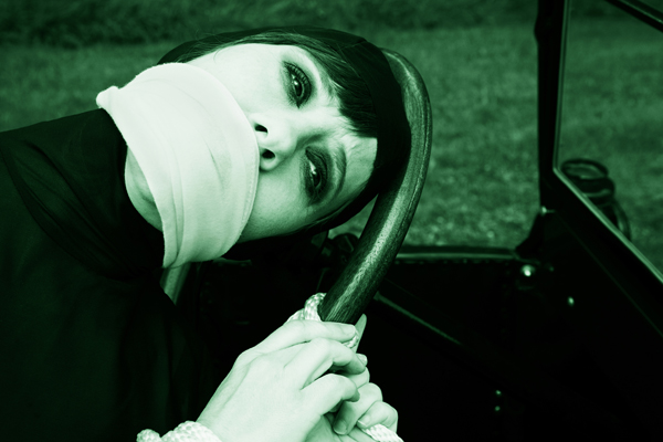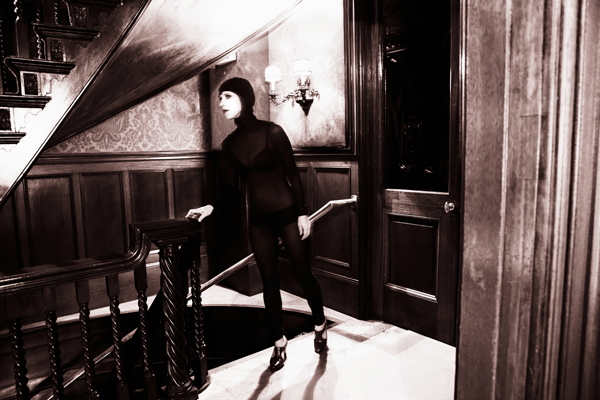 Masquerade features a series of 7 large-scale black and white digital photographs inspired by and utilizing film stills from Louis Feuillade’s 1915 film series Les Vampires. The project’s conceptual intention is to reveal innovative forms of female representation within a silent-film aesthetic.