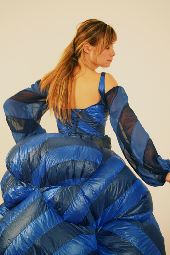 In the Charles Perrault fairy tale “Peau d’Âne” a young princess, whose kingdom’s riches are dependant on a gold excreting donkey, orders the impossible from her doting stepfather to thwart marrying him: three dresses made of immaterial materials. The first is to be made of the “sky” and should be as light and airy as the clouds. The second is to be made of “moonbeams” and should reflect the same lyrical intensity as the moon at night. The third, and last, is to be made of “sunlight” and should be as blinding and warm as the sun above.